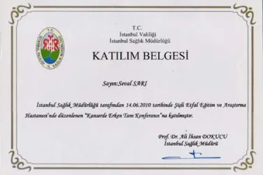 Dr. Seval Sarı – Sertifikalar ve Belgeler